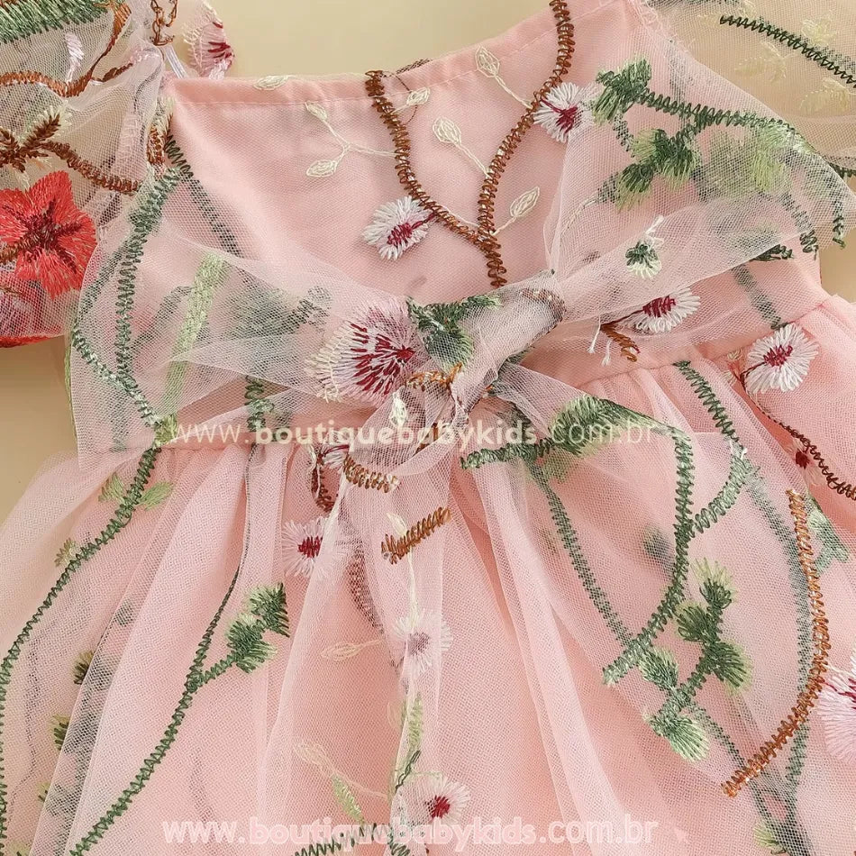 por❤️Encante-se com o Vestido Bebê Tule Bordado Encanto das Flores, uma peça que combina delicadeza e sofisticação para deixar sua pequena ainda mais graciosa em ocasiões especiais. Feito com um design primoroso, este vestido possui um corpinho em tecido leve e confortável, acompanhado por uma saia de tule fluida e cheia de charme.