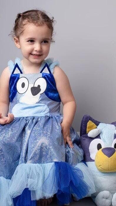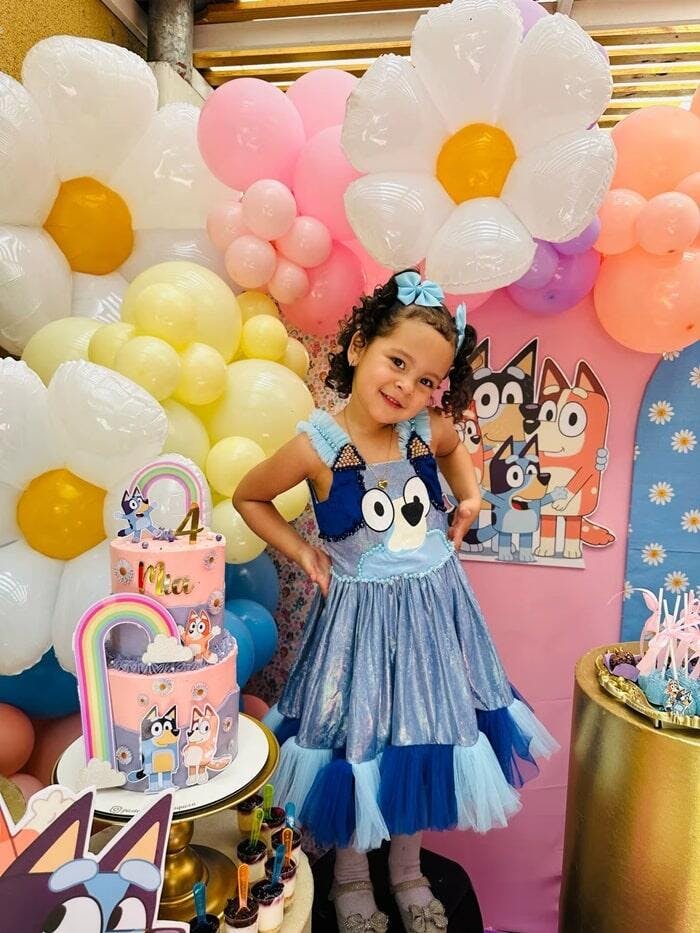 🐶Transforme os momentos de diversão em pura magia com o Vestido Infantil Temático Cachorrinha Bluey! Inspirado na adorável personagem, este vestido encantador é perfeito para festas, eventos temáticos ou brincadeiras do dia a dia.